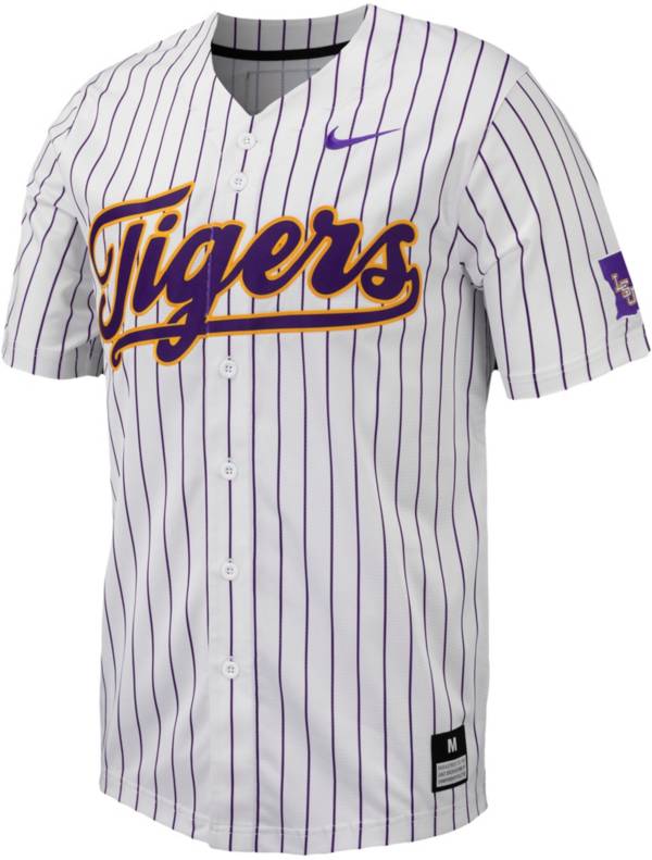 Nike Men s LSU Tigers White Pinstripe Full Button Replica Baseball Jersey Very well made.