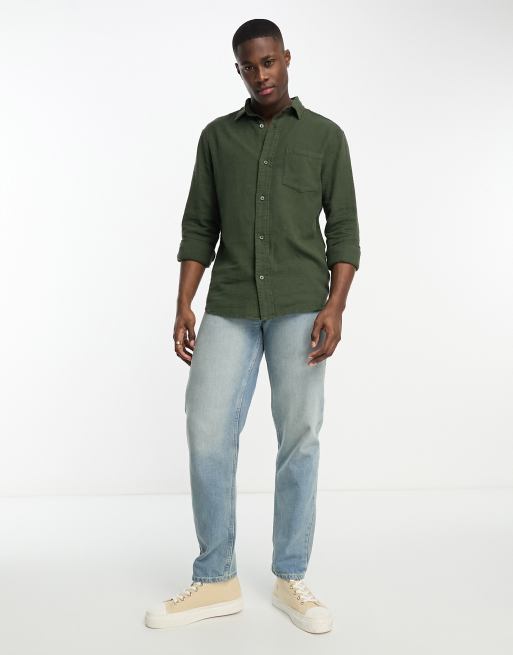 River Island long sleeve linen crepe one pocket shirt in khaki ASOS Very well made.
