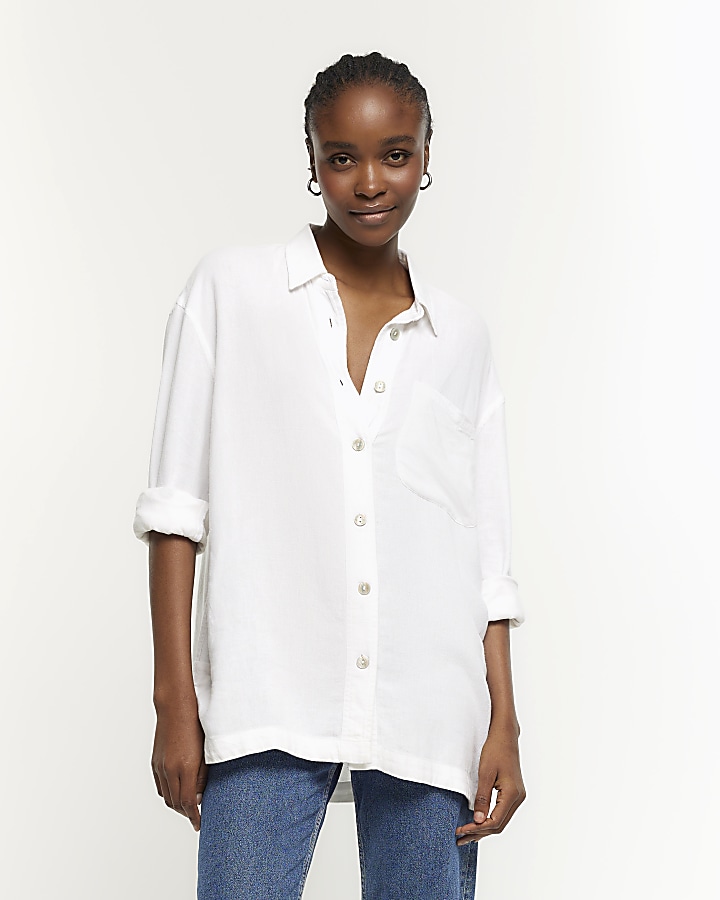 River Island Regular Fit Linen Blend Shirt White very Very well made.
