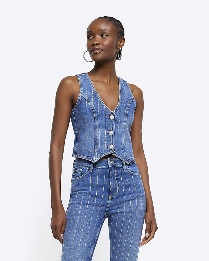 N.W.T RIVER ISLAND DENIM DIAMANTE STUDDED COLLAR SHIRT SIZE L eBay Very well made.