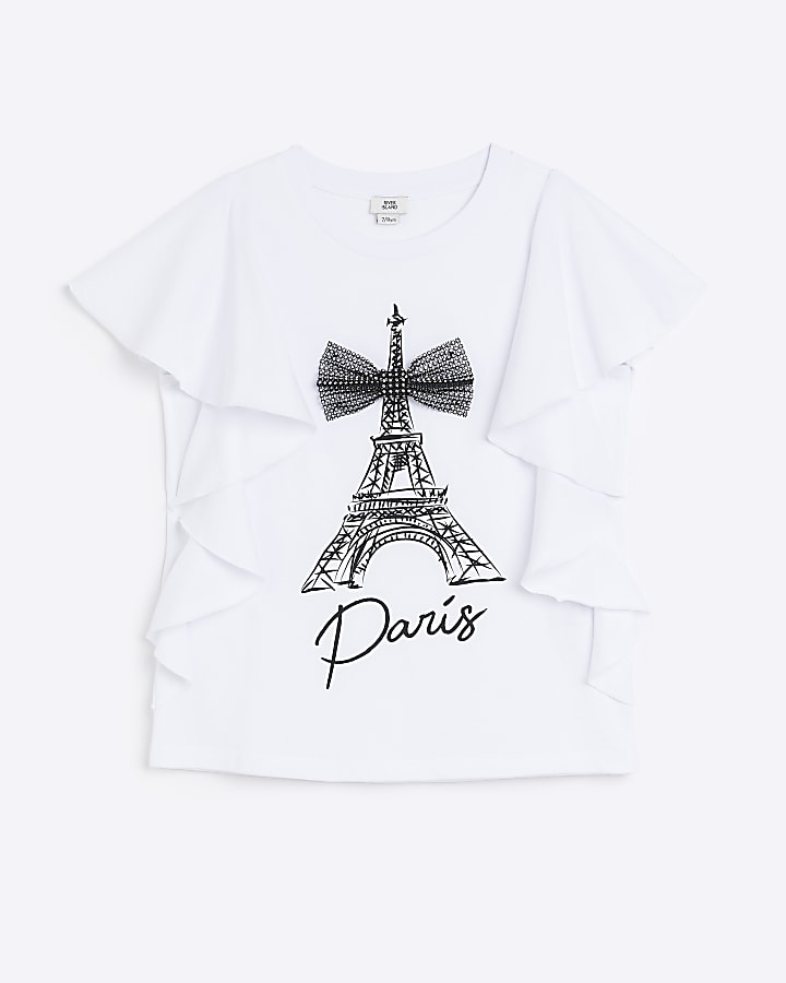 Girls White Diamante Paris Graphic T shirt River Island Very well made.