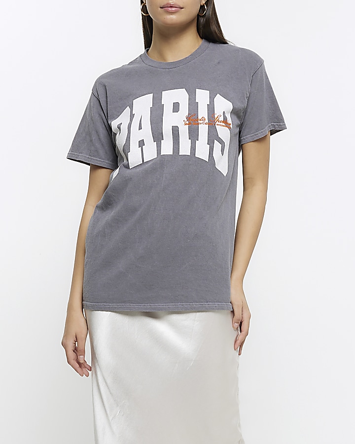 Grey washed Paris graphic t shirt Very well made.