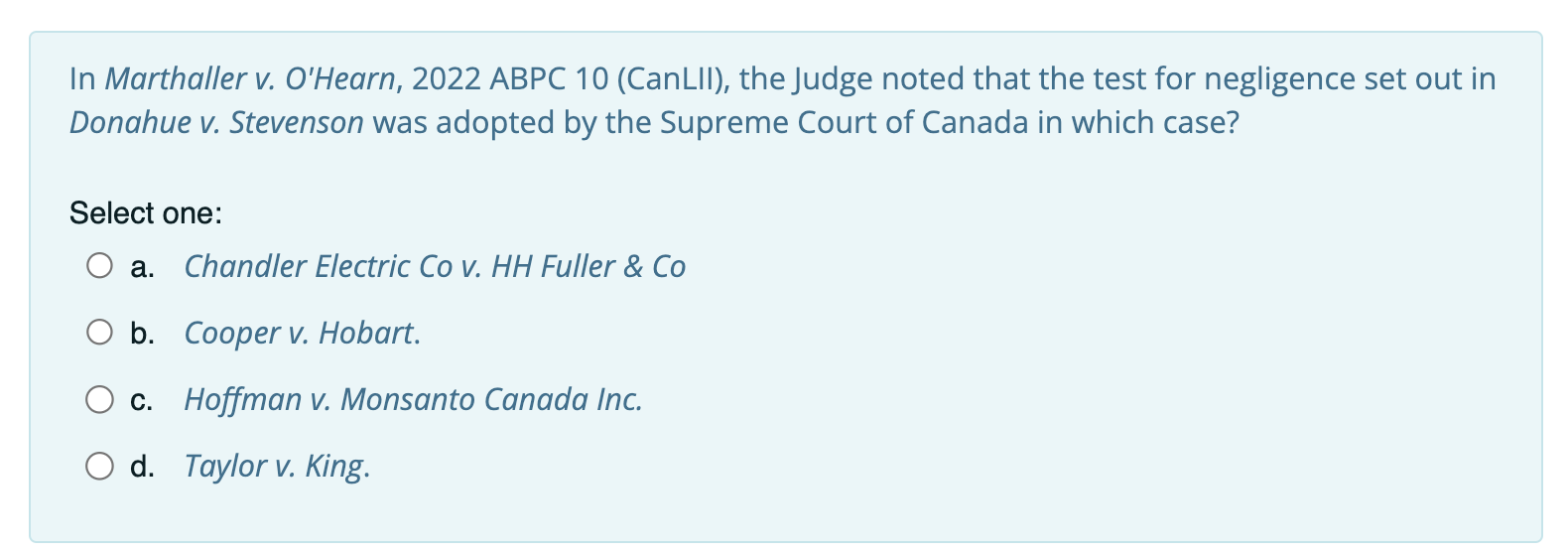 In Marthaller v. O Hearn 2022 ABPC 10 CanLII the Chegg Very well made.