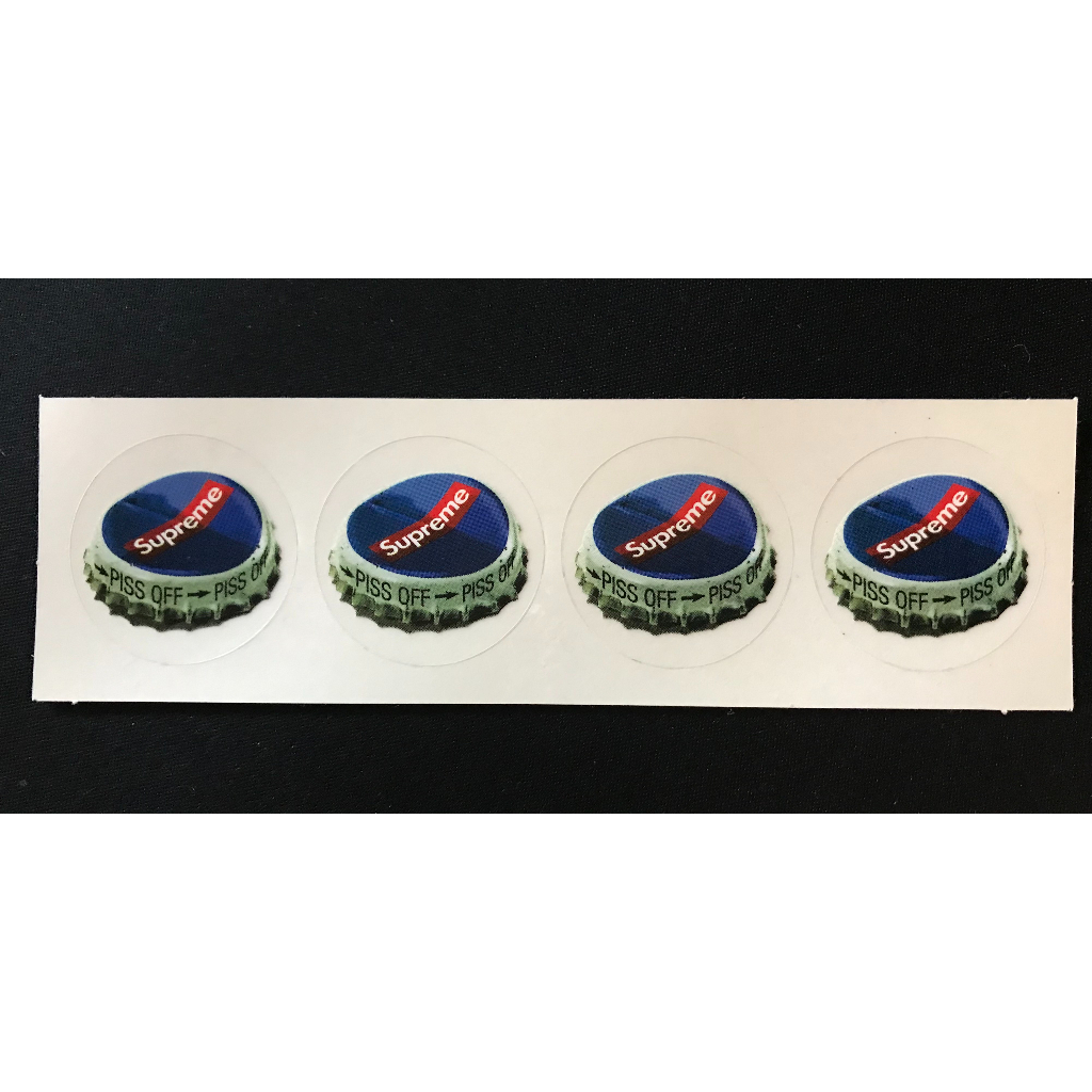 New Supreme New York 4 Authentic Bottle Caps Piss Off Stickers Very well made.