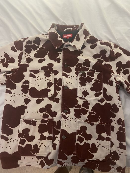 Supreme Supreme Velvet Chore Coat Cow Print FW20 Grailed Very well made.