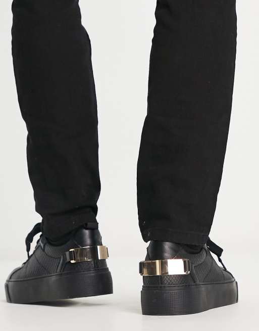 ASOS DESIGN sneakers in black with neoprene sock and gold hardware Very well made.