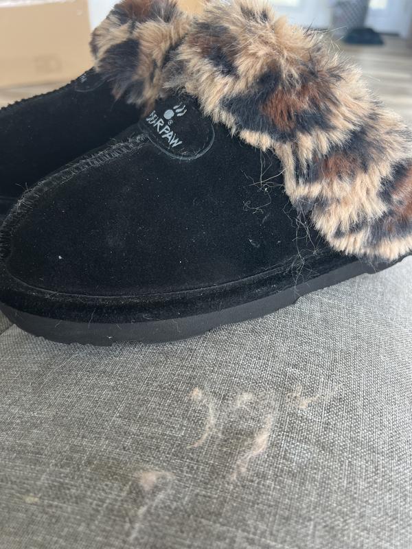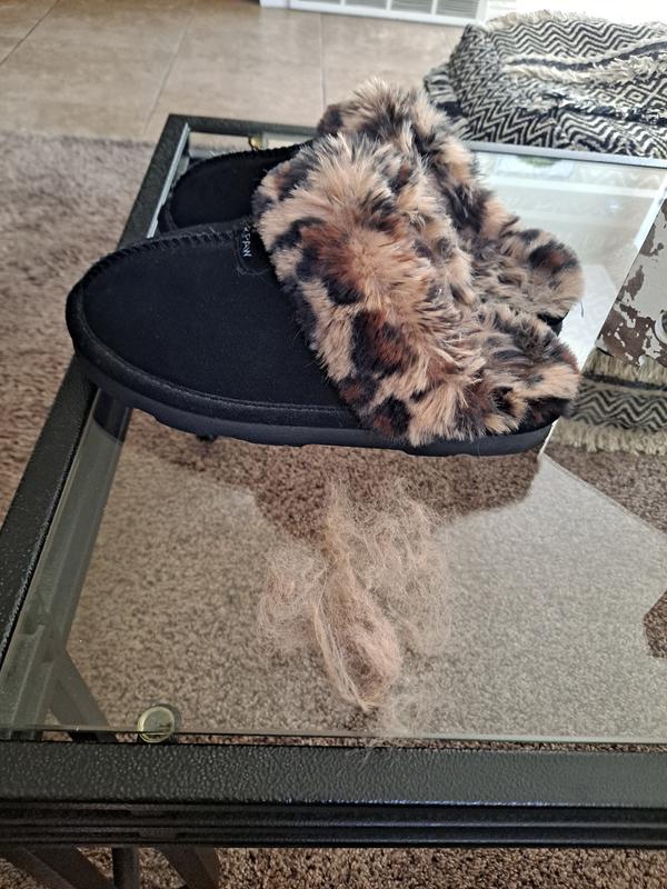 Bearpaw Slippers Leopard Print Faux Fur Slide On Women s Size 5 6 Very well made.
