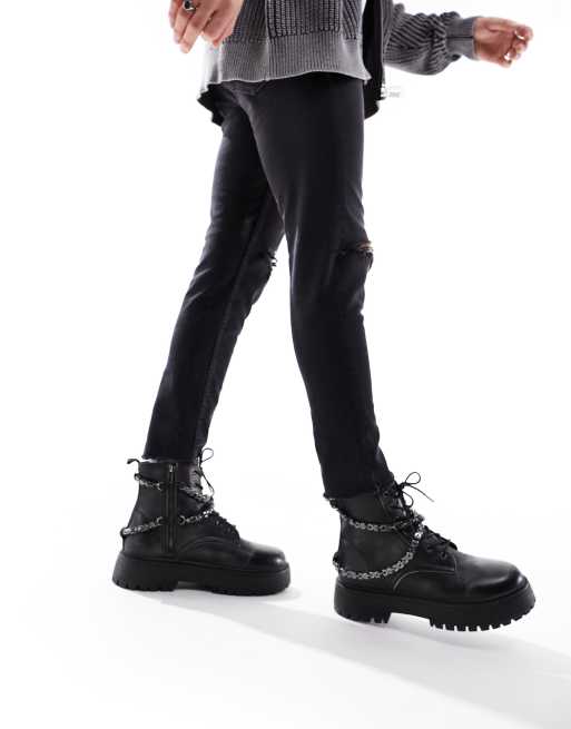 ASOS DESIGN chunky sole heeled lace up boots in black faux leather Very well made.
