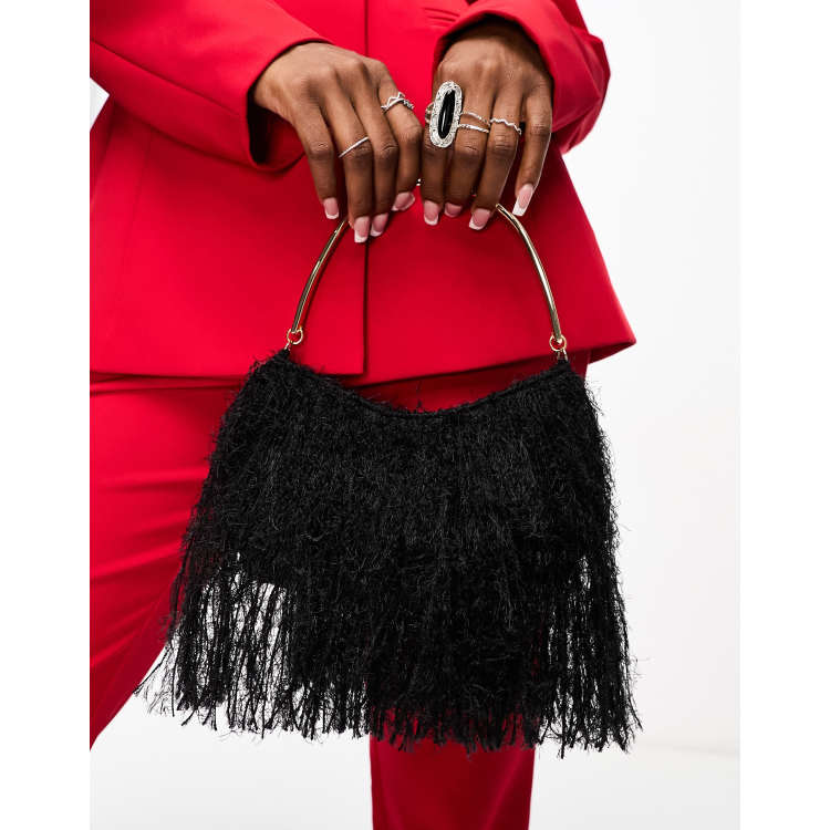 ASOS DESIGN faux feather clutch bag with gold handle in black Very well made.