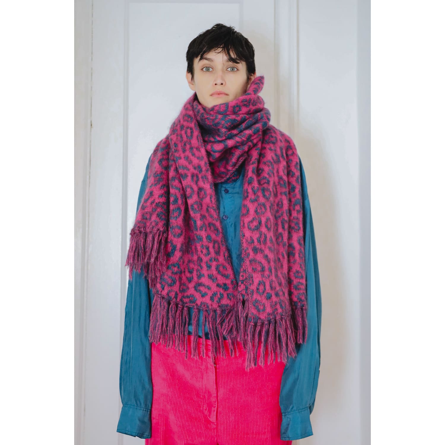 Cristobal Pink Leopard Blanket Scarf In Brushed Recycled Cashmere Very well made.