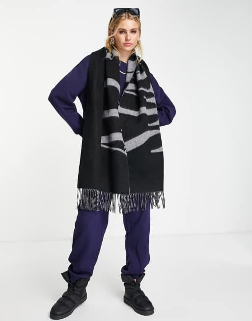 AllSaints oversized blanket scarf with branding in grey and black Very well made.