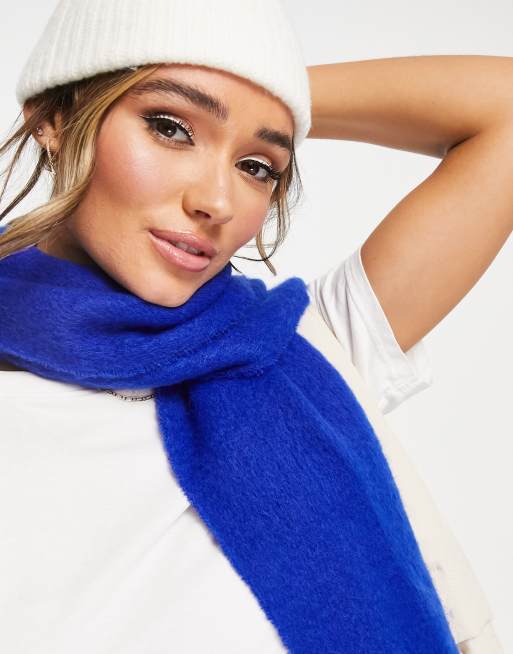 ASOS DESIGN fluffy tassel scarf in cobalt blue Very well made.