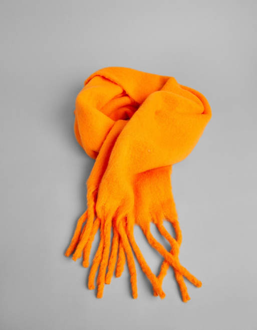 Bright orange scarf in solid color thick soft and very warm Very well made.
