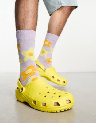 Mens Colour Block Classic Clog In Lemon In Yellow Very well made.