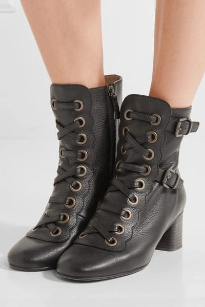 Orson Lace up Textured leather Ankle Boots In Black Very well made.
