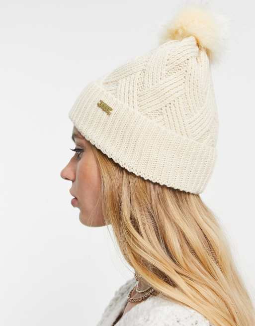 Elle diamond rib beanie faux fur bobble hat in cream ASOS Very well made.