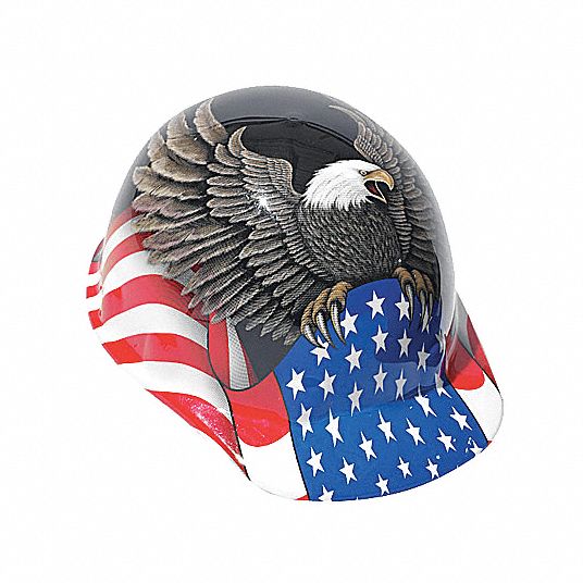 American Flag with Eagle Ratchet 4 Point Hard Hat 1AVT2 Very well made.