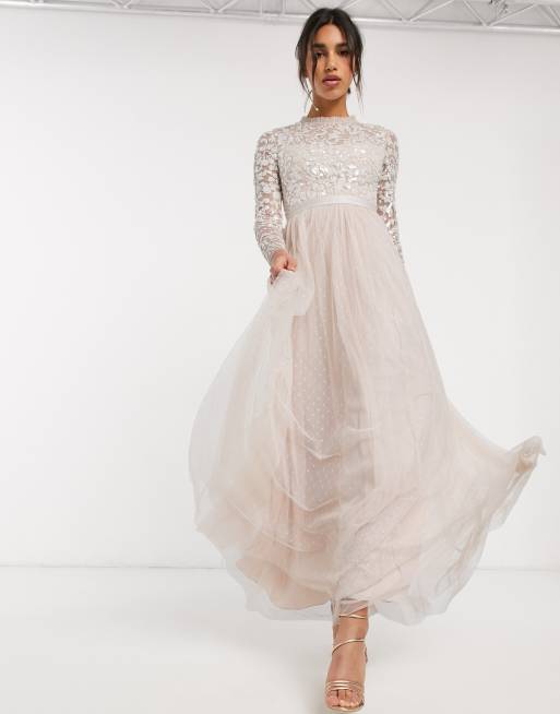 Needle Thread embellished maxi dress with tulle skirt in blush Very well made.