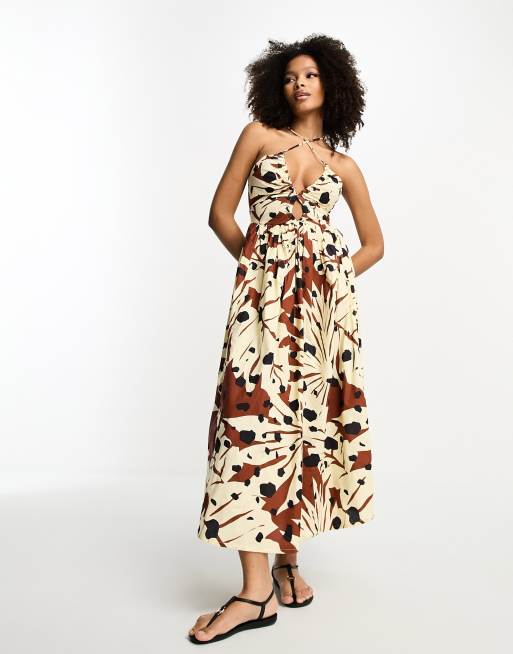ASOS DESIGN multiway bikini detail midi sundress in chocolate graphic floral Very well made.