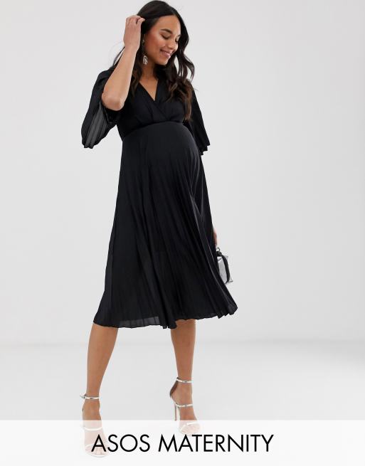ASOS DESIGN Maternity kimono pleated midi dress in black Very well made.