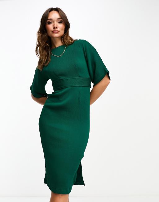 Closet London ribbed pencil dress with tie belt in emerald green Very well made.
