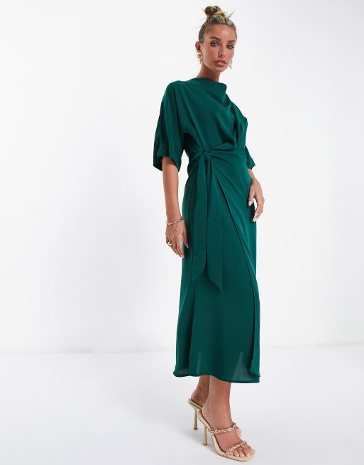 ASOS DESIGN cowl neck midi dress with wrap skirt in forest green Very well made.