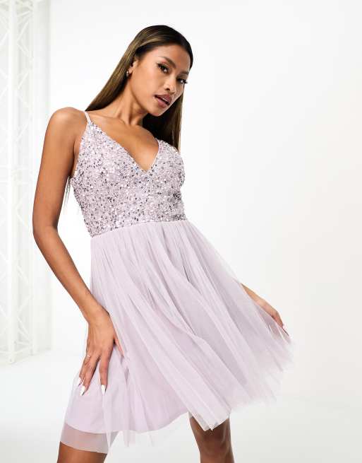 Beauut Bridesmaids embellished 2 in 1 mini dress in lilac Very well made.