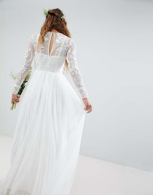 ASOS DESIGN Elizabeth long sleeve wedding dress with beaded bodice Very well made.