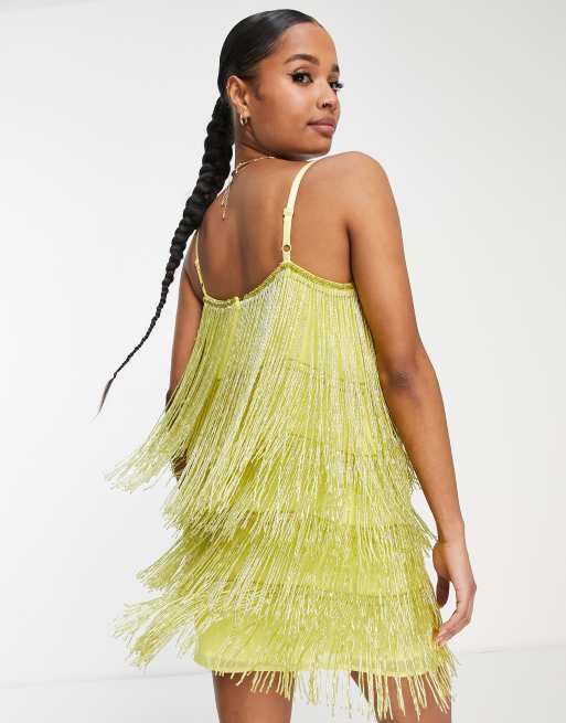 ASOS DESIGN fringe shift midi dress with cut out detail in yellow Very well made.