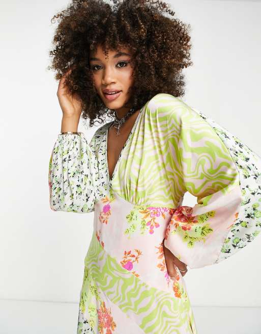ASOS DESIGN satin mixed prints seam detail midi dress Very well made.