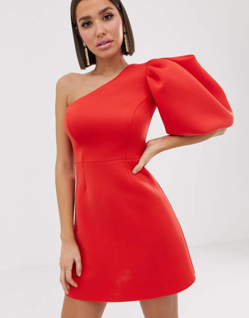 ASOS DESIGN one shoulder puff sleeve mini skater dress ASOS Very well made.