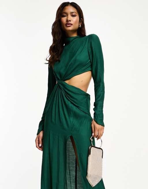 ASOS DESIGN twist waist maxi dress with high neck in green Very well made.