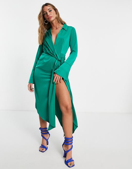 ASOS DESIGN drape shirt midi dress in satin Very well made.