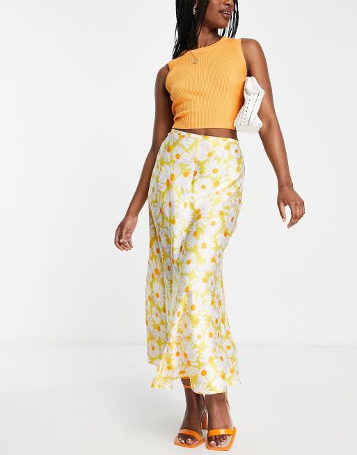 ASOS DESIGN satin full midi skirt in orange daisy print ASOS Very well made.