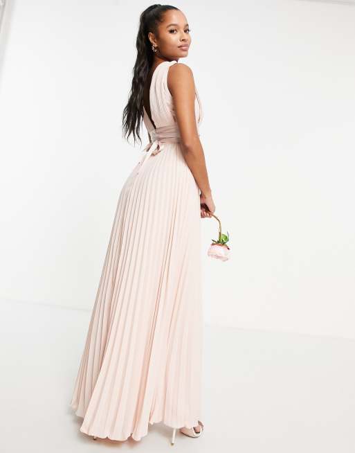 ASOS DESIGN Petite Bridesmaid pleated cami maxi dress with satin wrap waist in blush Very well made.