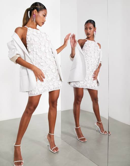 ASOS LUXE strappy mini dress with floral applique in white Very well made.