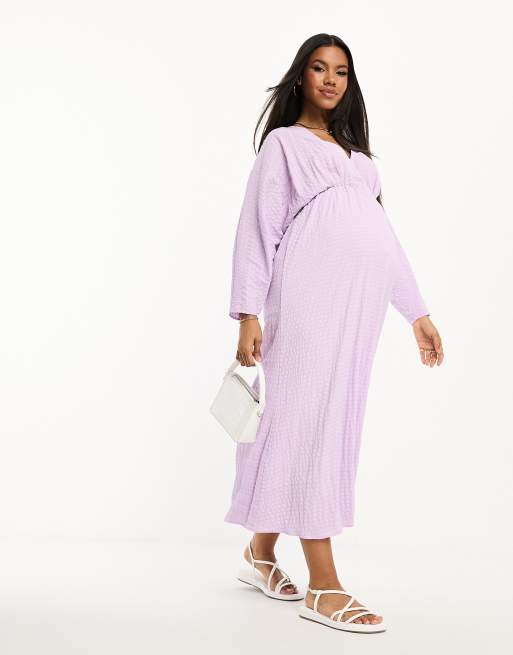 ASOS DESIGN Maternity seersucker wrap front batwing midaxi dress in lilac Very well made.