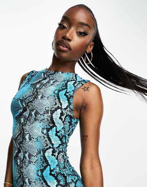Naked Wardrobe racer neck mini dress in blue snake print Very well made.