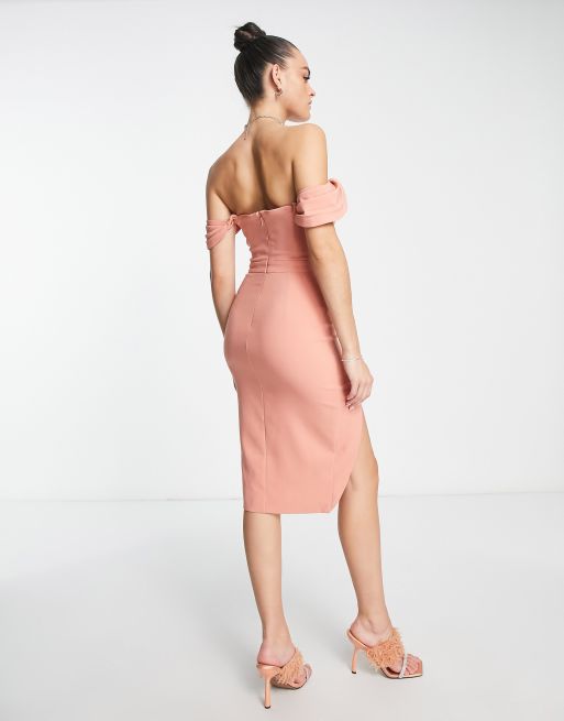 Lavish Alice pleated bardot midi dress in coral Very well made.
