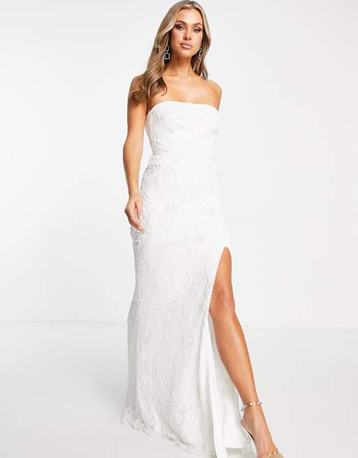 White Embroidered Tiered Bandeau Maxi Dress Very well made.