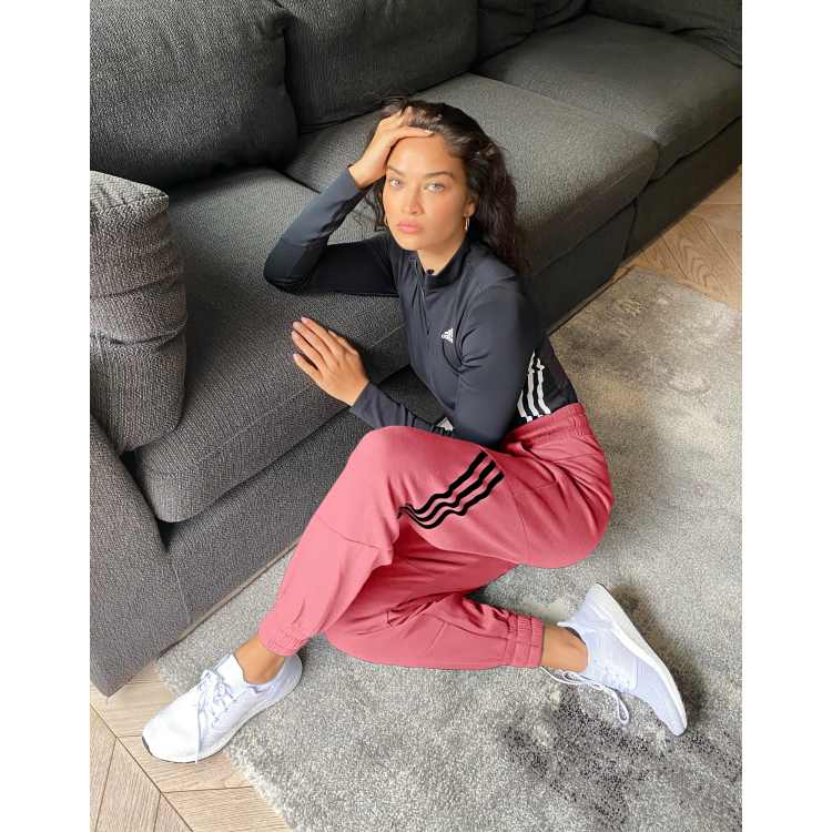adidas Training 3 stripe oversized joggers in pink Very well made.
