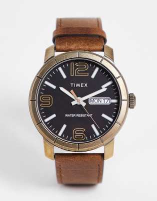 Timex TW2R64200 Men s MOD 44 Brown Leather Watch Blue Dial Day Very well made.