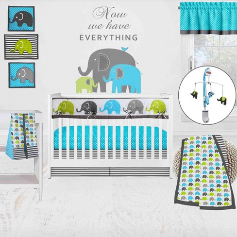 Bacati Elephants Aqua lime gray 10 Pc Crib Bedding Set With Long Very well made.