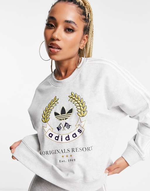 adidas Originals Unisex Preppy Varsity large logo sweatshirt in off white Very well made.