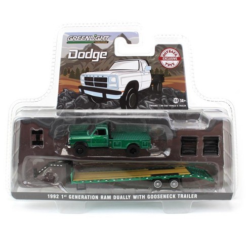 Greenlight 1 64 1992 Dodge Ram 1st Gen White with Black Flatbed Black Gooseneck Trailer Green Machine 51387 AGREEN Very well made.