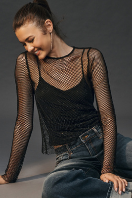 RHINESTONE MESH TOP Black ZARA Uzbekistan Very well made.