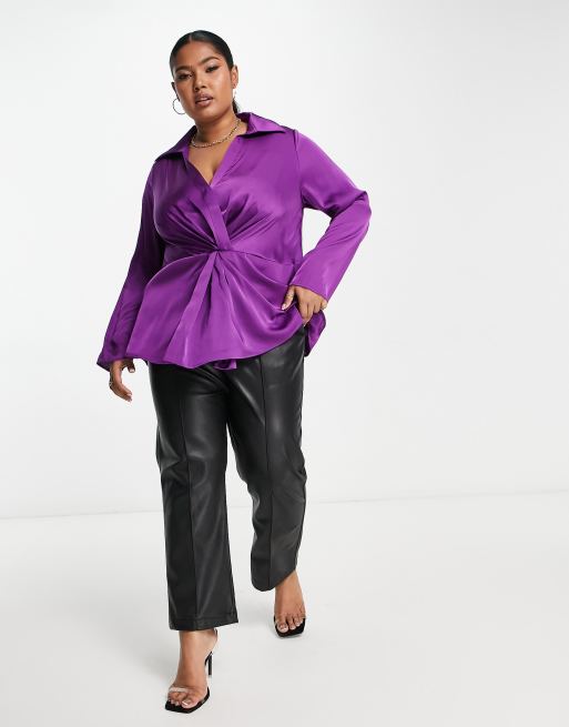 Vila Curve satin shirt with knot front in purple ASOS Very well made.