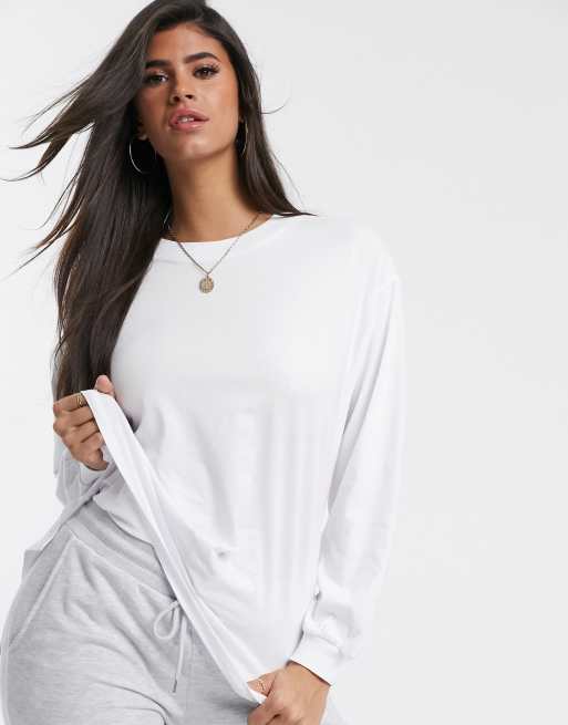 ASOS DESIGN oversized long sleeve t shirt with cuff detail in white Very well made.