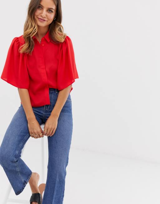 ASOS DESIGN cropped blouse with flutter sleeve Very well made.