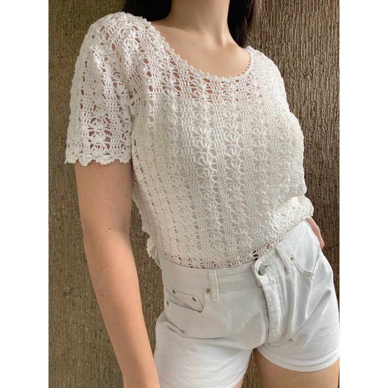 Crochet Pattern Vintage 70s Boho Lacy White Blouse Top Blouse Very well made.